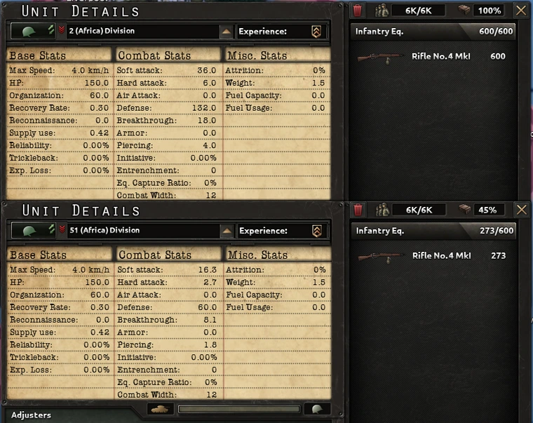 What are the consequences of divisions with low equipment?