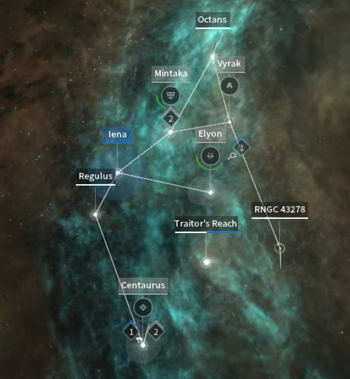 А вообще пока интересно, какую-то систему нашел, где корабли пропалают. Там еще астероид был. И вообще дофига колец астероидов. Я вообще хорошо заспавнился на конце рукава прям. Из разумной жизни только Кошмары некие.