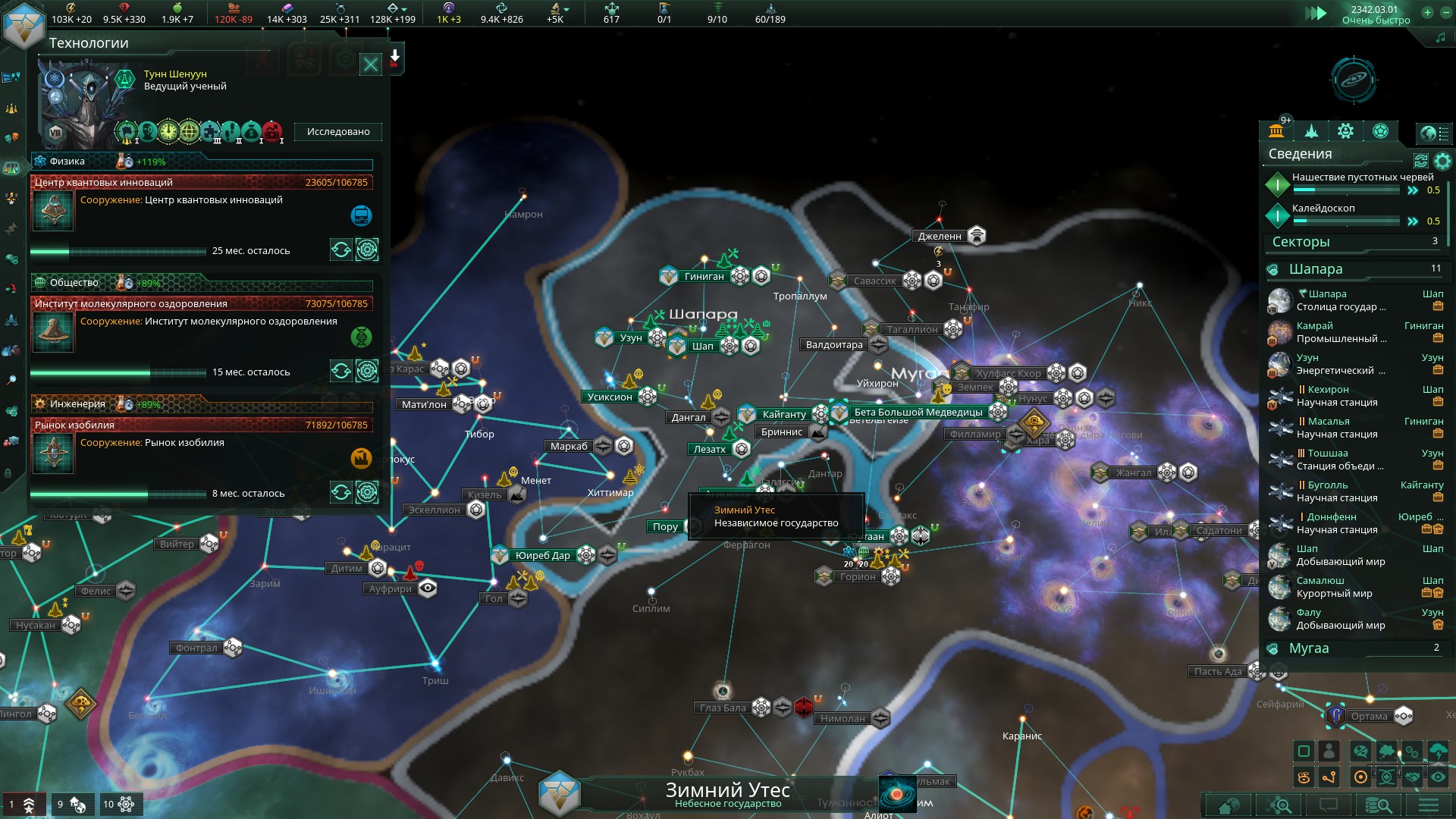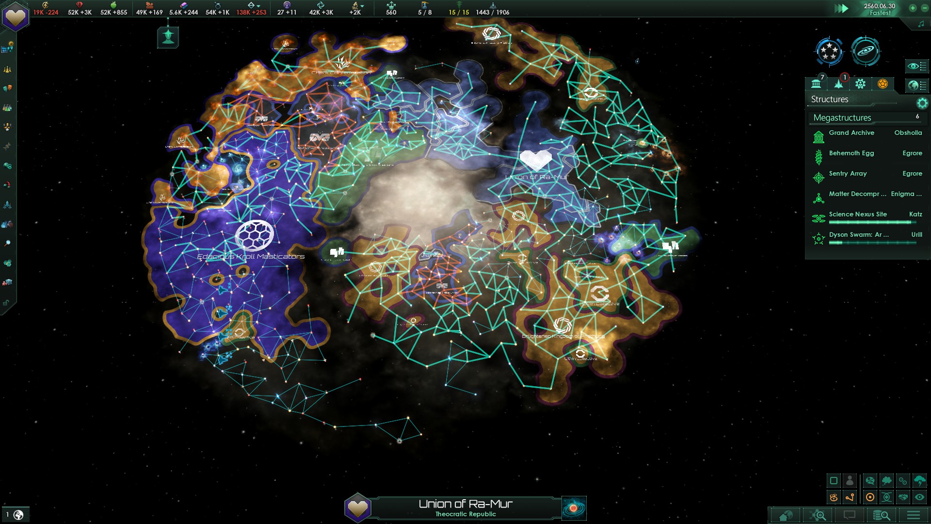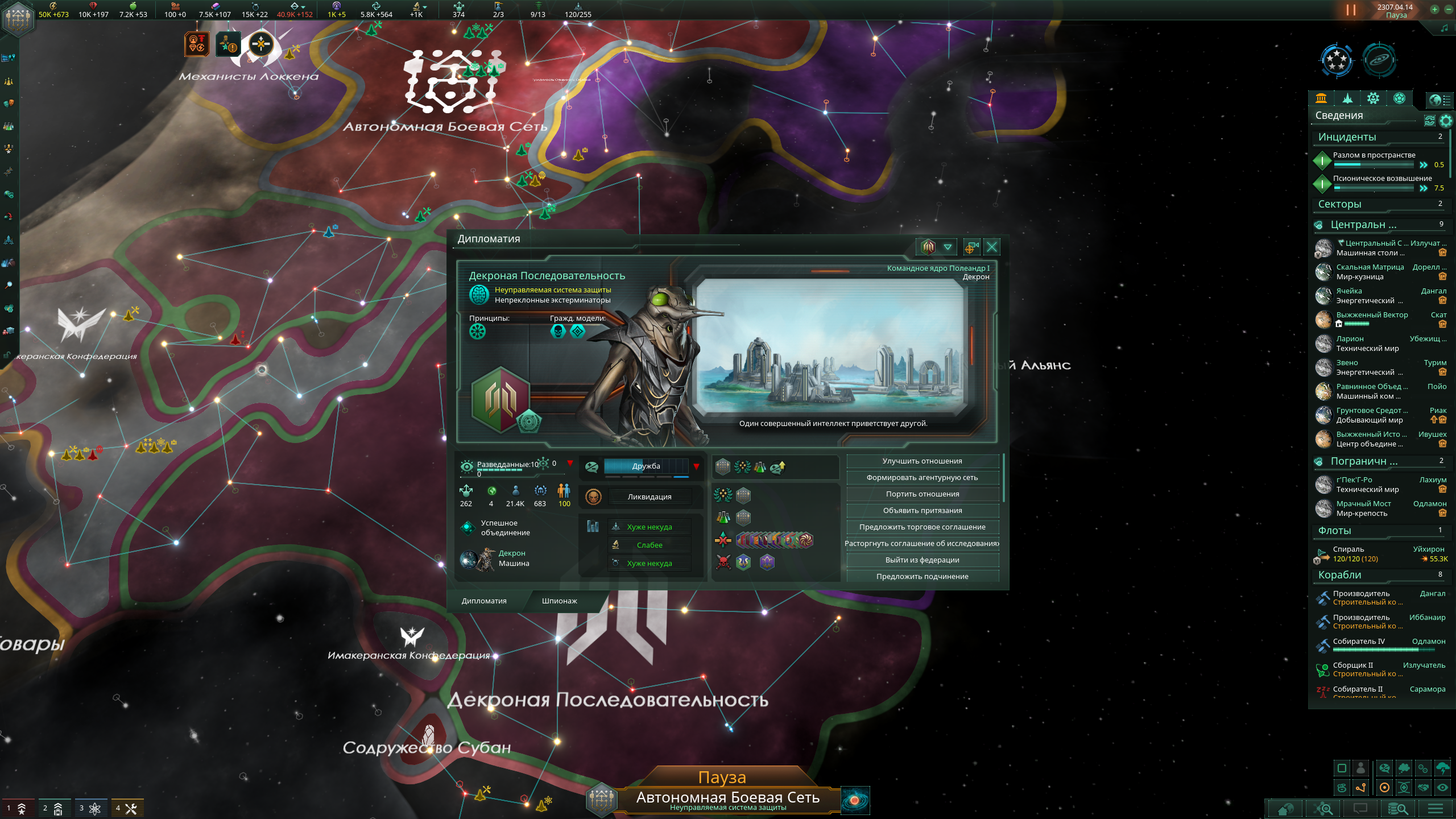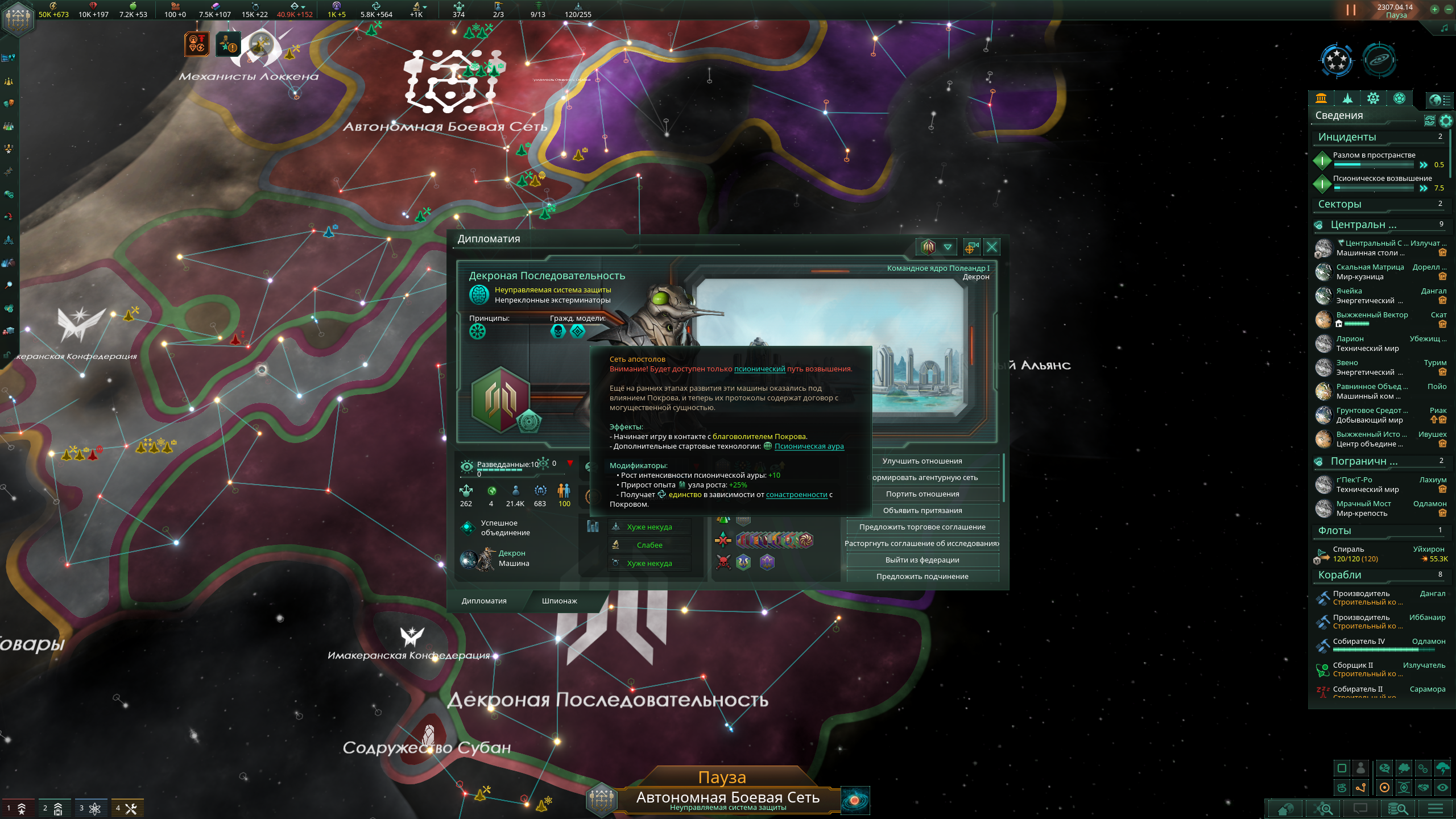 Любопытно что ветка кризиса, предполагающая сожжение всего живого, оставляет для игрока выбор в пользу дружбы и сохранения сотрудничества с соседями. Стеллька не перестает удивлять. Ну и да, после улучшения в институт эта мегаструктура будет приносить 250 сплавов