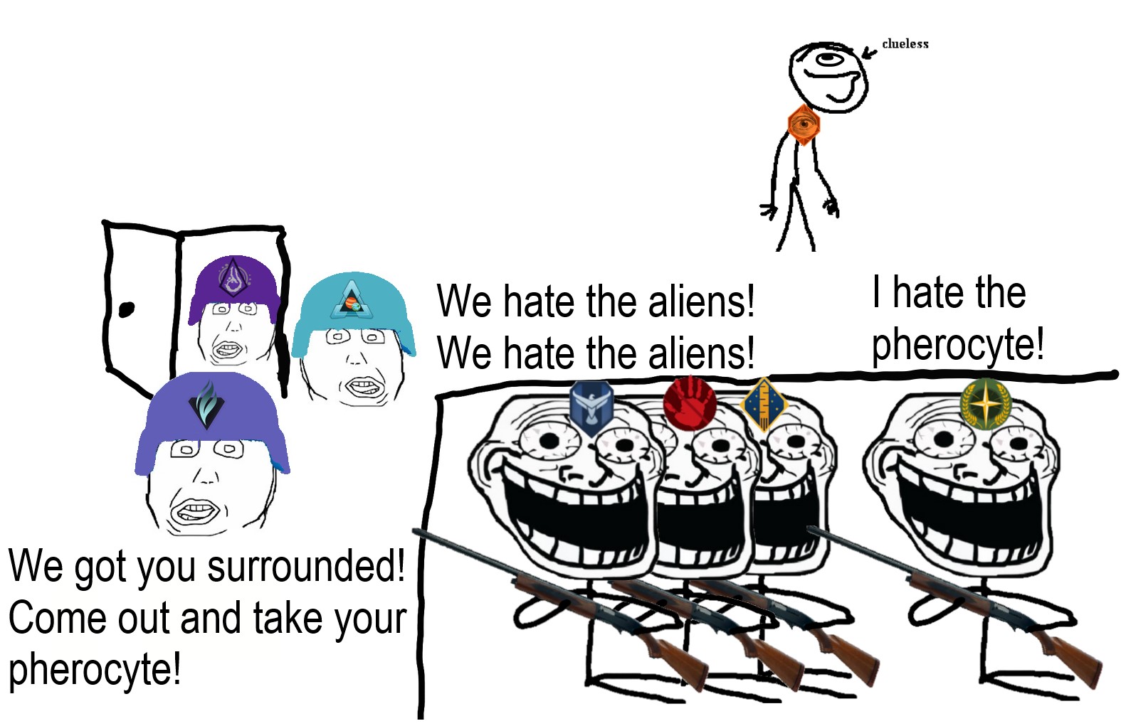Проиграть примитивной расе? Не бывать такому! С помощью технологий Предков мы сможем выйти за рамки и грани материального мира и любого здравого смысла! Следующим ударом станет вылет у примитива игры на рабочий стол с откатом на старый сейв. Пусть охуеет, сука!