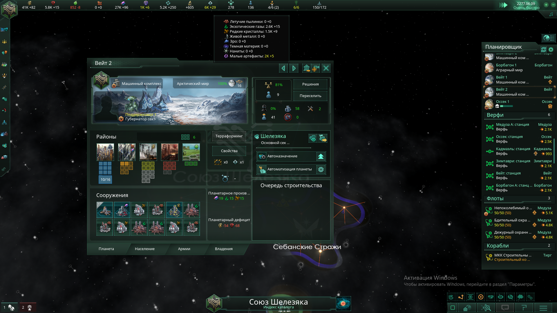 >>1291855 >Ладно, напишу в мертвый. Ишь ты, его перекатили недавно >Я просто фундаментально понимаю, что нужно строить здания, но какие? Смотря ради чего ты играешь и какие есть проблемы/задачи в данный момент. Но точно надо строить на каждой планете ментов и клоунов, чтобы норот не бунтовал и смотреть на то, под что эта планета лучше пойдет. Если есть бонусы на науку - лучше застроит ее научными зданиями, если есть бонусы на ресурсы или много соответствующих районов - можно сделать добывающий мир и особенно не застраивать, если просто много места, то строить фабрики и заводы. Вообще, Стелларис это 4Х с элементами отыгрыша, если вообще нет фантазии, то стремись захватить голактеке.
