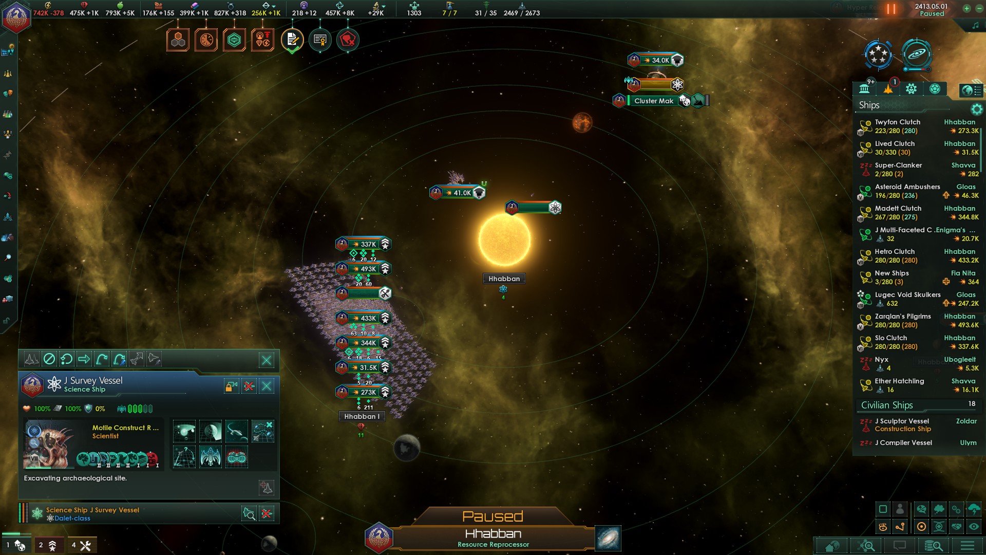>>1298547 В 4.0 считаются не каждый поп, а группы попов. Если их 5к на планете, то обсчитываются как один.В бете недавно даже объединили подгруппы с разными политическими взглядами в одну, но что-то сильно сломали и это изменение откатили. Обещали это изменение в 4.5 добавить или типа того. Есть мнение, что снижение количества гиперлейнов при старте сильно повышает производительность. Тогда поиск пути для каждого флота упрощается, а бот очень любит гонять свои флоты кругами.