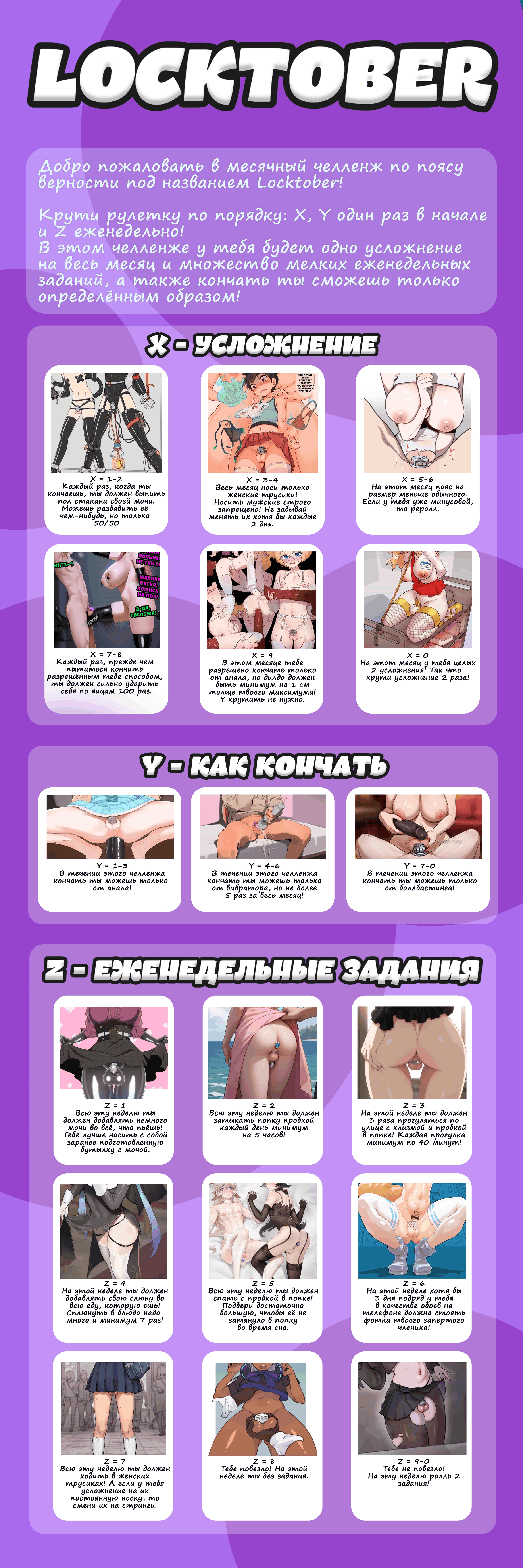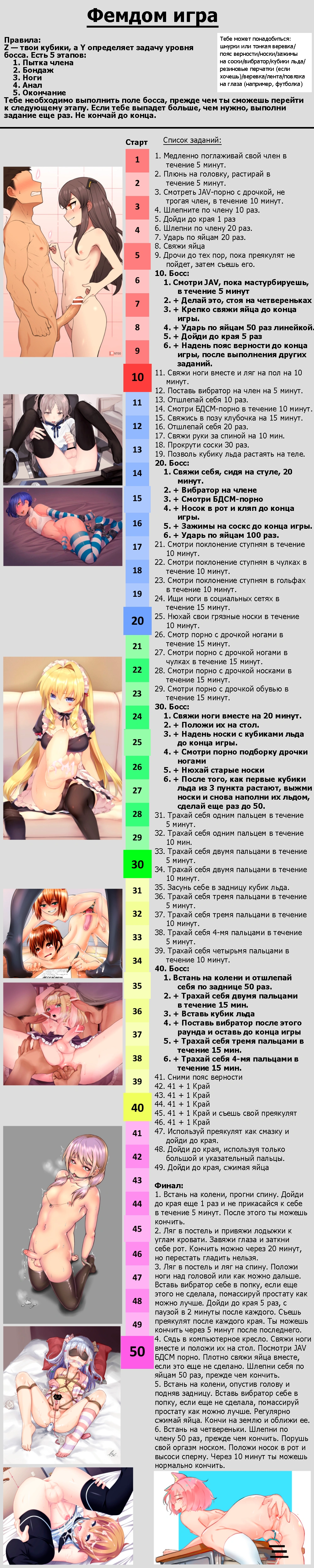 Короче, задумка рулетки такая: Что то типа школы sissy с различными уроками например( Урок Фут фетиша, Урок феминизации, Урок минета и тд. всего напридумывал 60 уроков) В каждом предмете есть 6 уроков и один экзамен с различными челленджами и заданиями если не выполняешь получаешь наказание от учителя либо унижение от одноклассников если наоборот все круто сделал. Каждый урок ведет определенная аниме тян, например предмет Анала ведет Тифа Локхарт и тд. ( все оформлено с картинками, наказание от учителей так же с картинками где эти учителя фигурируют, например если проебался на одном из уроков анала то обязательно в наказание будет фигурировать Тифа с картинкой где она заставляет ей лизать или что то подобное. Это только верхушка.