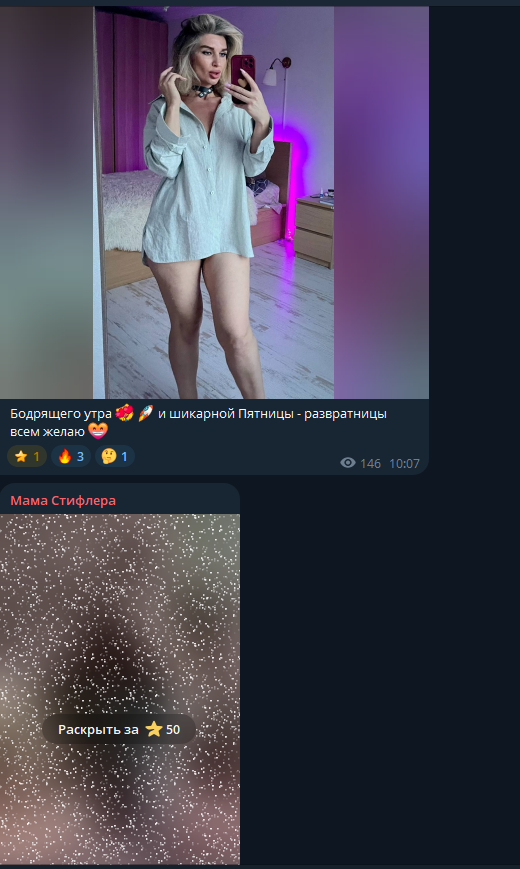 Есть приватка с XXX, в том числе piss (партнёр - женатый мужик; по её словам, его жена раньше знала, что он с ней встречается, сейчас не знает, что они продолжают отношения): t.me/PayIrina_bot