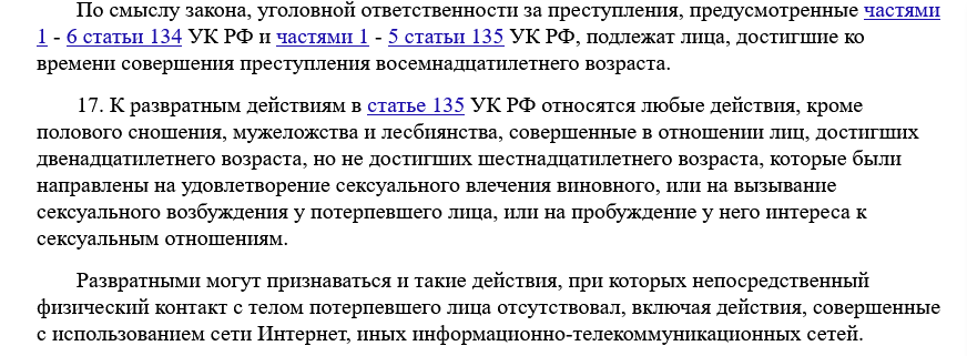 >>997852 За срок давности не скажу, может, по этим случаям уже и не привлечь действительно (хотя закон что дышло: куда повернул - туда и вышло) Но состав преступления был ещё до того, как случилось сексуализированное насилие. 13летке слать развратные вещи и порно - это тоже статья