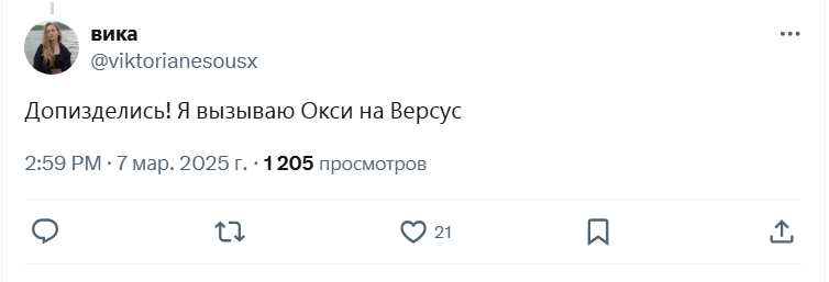 И ни 1 пруфа вика кучак не принесла, что папа окси лично ей что-то пошлое писал в личку, а они общались ТРИ ГОДА. и якобы он ПРИСЫЛАЛ ПОРНУХУ и всякте пошлые реквесты делал.
