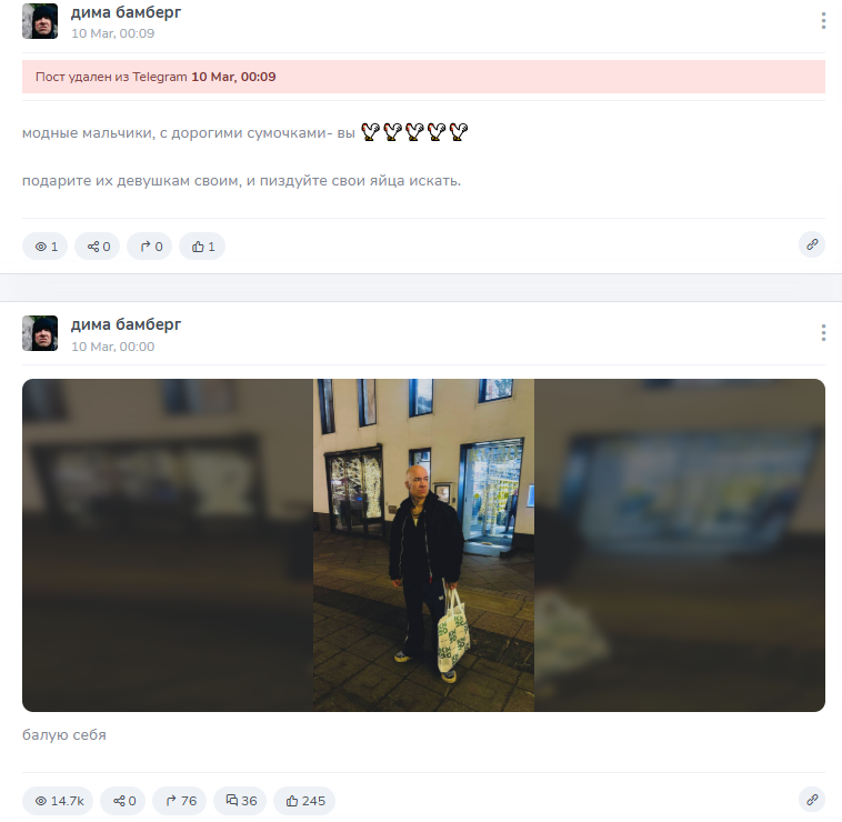 Блять, очень хочется разъебать Димку Памперса чтоб у него жопа сгорела полюбас ему личные газонюхи типа Серёги доносят всё что о нем пишут он даже отвечал на мой пост про его кринжатину в тт, хотя не факт что на мой, да стопроц не на мой, короче не об этом, хочется оформить жозенький разъёбченко ватному скоту, чтоб сраки! Сраки горели бляттьб у меня прост какой то интересной инфы к сожалениб нет, по этой причине обращаюсь к Бамберговедам, Архивариусам, хранителям мемов и прочим уважаемым людям, поделитесь калтентом, пасты, пикчи, вебм, что угодно, что порвет пердак Памперсу и прочему ватному скоту, !! Бля, может начать прям активно постить на тему того какой он куколдище, что жена его использовала ради внж германии а потом дропнула лоха старого??..(;