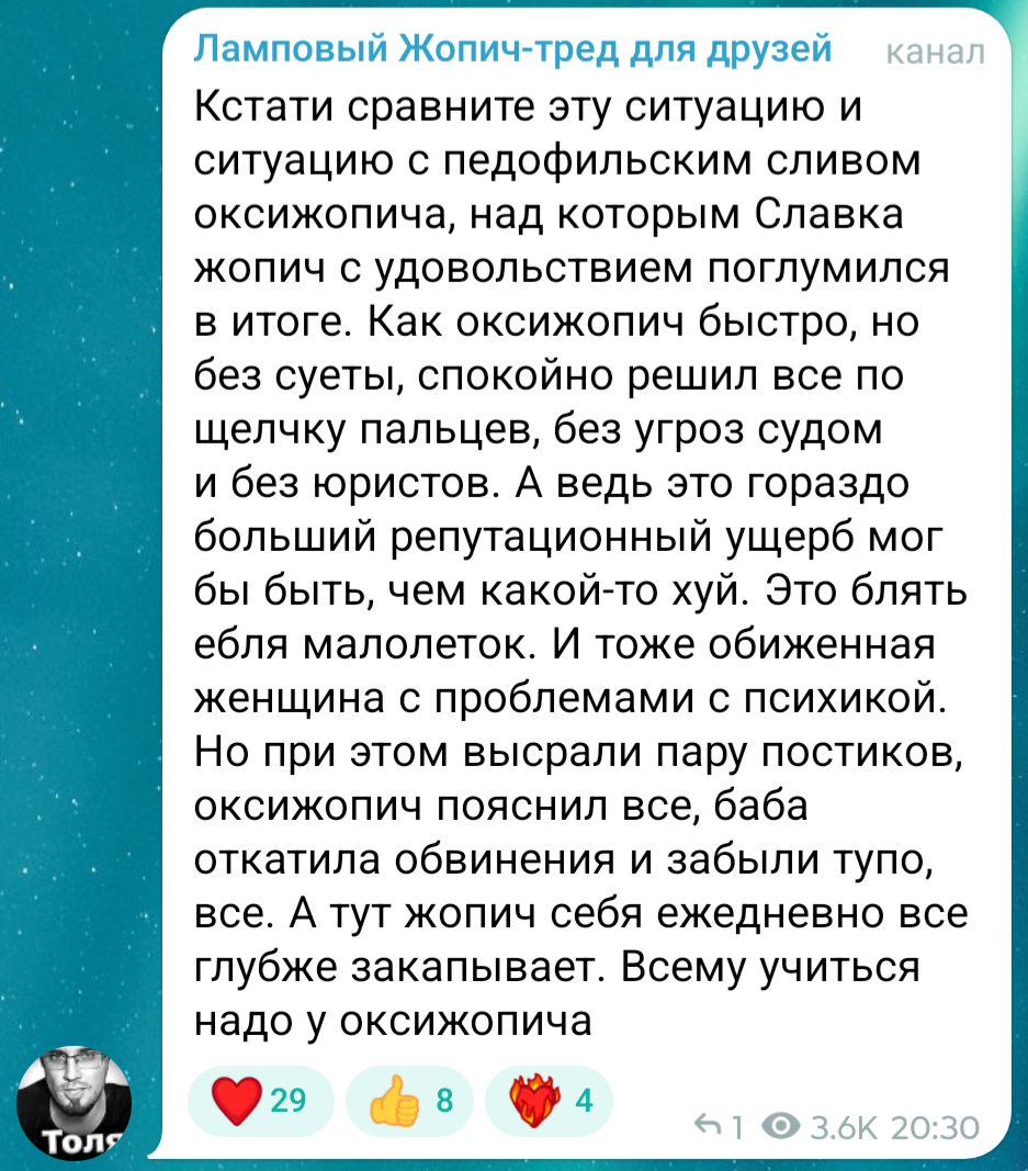 >>1022146 А это вообще админ обоссанного тгк залётных терпил.