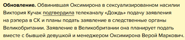 Следила за чатом тгк оксиподстилок с марта. Господи, они там такую хуйню несут, похлеще вас инцелов или тёток на багиньке. Ещё там активно зависает бывшая служанка Хованского, которой он комп зажабил. Она там активно сосёт оксижопичу и срёт его бывших. Короче, там эти ебанашки совсем разошлись и срут всех даже за негативную реакцию на их высерах с полкилометра. А с недавнего слива оргии леваков в Тбилиси у них совсем ржавая крыша поехала, уже админша в ахуе. В общем, надоело наблюдать за этими тпшками. Если чё там будет интересное, то кидайте сюда или в тг жопич треда.