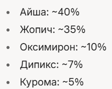 2. Защитники Айши Бедная Айшуня, вы чё на неё набросились, дауны? У неё биполярка, мать пиздец, детство в аду, а вы орёте «шиза, в дурку». Похер, что сливы кидает, она жертва, а Жопич её кинул, как чмо. Пожалейте девочку, не гоните манию, хватит Курому постить, мрази.