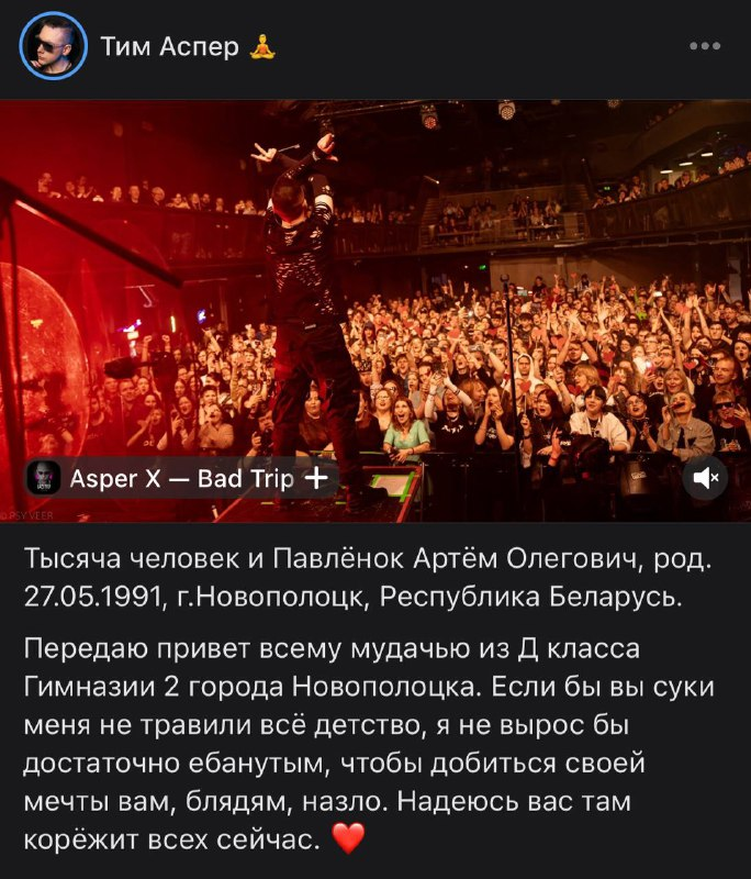 А помните Czar на интервью говорил, что вместе с Шокком и 1 классом смогли бы собрать олимпийский? Сейчас у него тур по Роccии, собирает клубы с вместительностью 70 человек. Кто-то уже ходил?