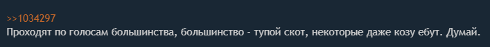 >>1034299 Может ты и мог бы поверить в то что ты же и говоришь, но есть таблица с голосами и там всё зафиксировано и можно посмотреть голос каждого. Никаких залетух.