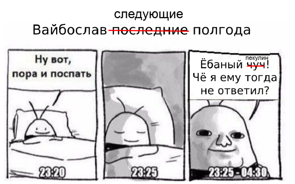 >>1034310 это мотивация лишь ограниченного быдла. мол, раз они меня, то и я их. приличные люди так не мыслят, конечно же. для меня же петушки просто белый шум, музыка для лифтов, я не замечаю это. знать не знаю, кто там и против кого (ну кроме пекулина, всю доску засрал, этого нереально не знать). моя задача, обратить твоё внимание на то, что лично ты говноед. не он, не они. ты. у меня нет рецепта, что с этим делать, это уже личный путь. но одно дело, когда ты в неведении, в этом ты не виноват. теперь же ты знаешь, и если ничего с этим не сделаешь, то будешь преступник против культуры, быдло. а этому нет оправданий