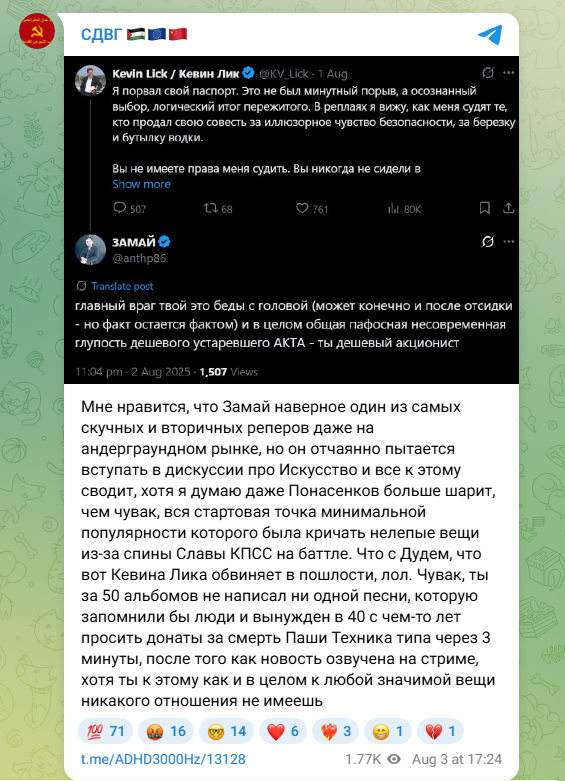 Кста, давайте подумаем, кто из рурэпа следующий сфидит Помню, в последний раз ванговал на техника, это несложно было... Вариантов не так много. Гуфака например
