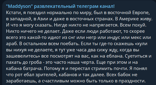 Бля... никто из наших Жопичей уже никогда не напишет ТАКОЙ шедевр.... Пора признать, что Славон, Оксана, прости господи Букир и даже какой нить ОГ Будка, уже всё, они уже старые пирдуны... им уже не угнаться за молодыми стильными игроками.... Вот вы можете себе представить, чтобы наш Жопсень щяс взял и спокойно налегке и при этом уверенно выдал нечто подобное?? Вот и я не могу... Нашим скуфиксам уже пора заканчивать позориться и валить на пенсию... https://youtu.be/MtG-cTCKSLs