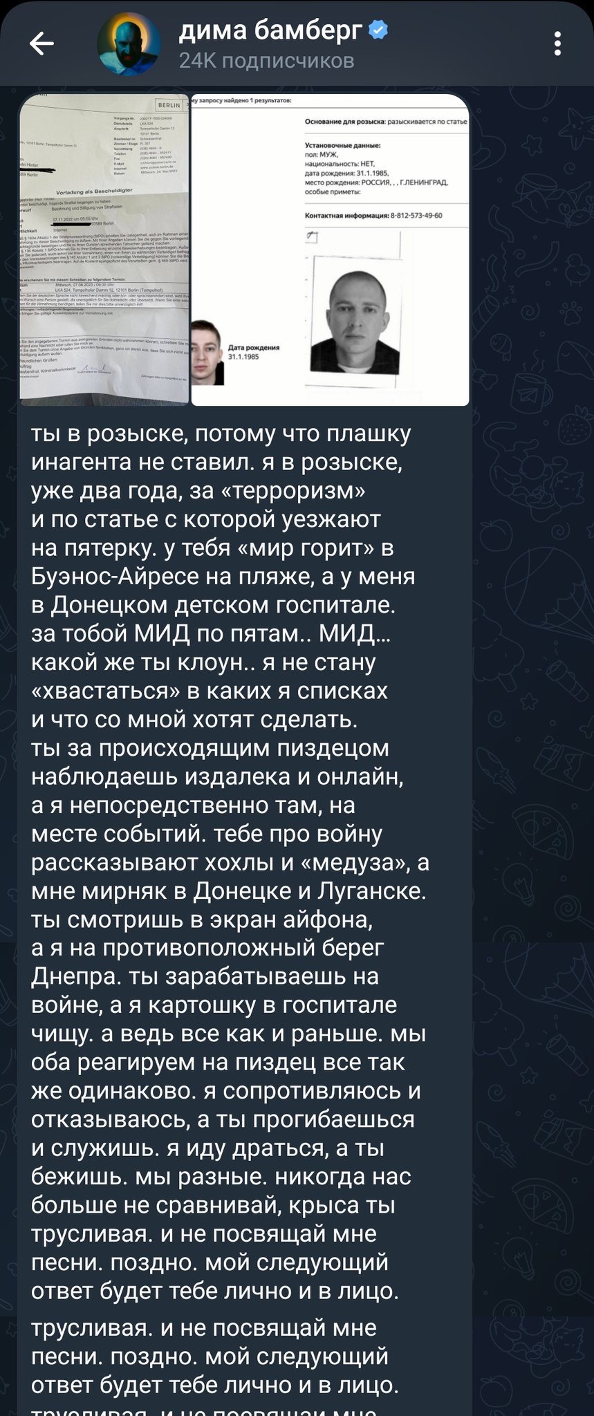 ну типа жить в стране где на тебя за какуюто невинную строчку на реп баттле может быть объявлена натуральная ОХОТА, и тебе придётся ПРЯТАТЬСЯ, и при этом закон будет не на твоей стороне и обществу в целом похуй.... как будто в такой стране не оч хочется жить, не??? любой человек с мозгами от таких событий в жизни охуел бы окончательно и бесповоротно и не задумываясь собрал бы манатки, щас бы уже работал каким-нибудь воспитателем детей-даунов как первый класс....