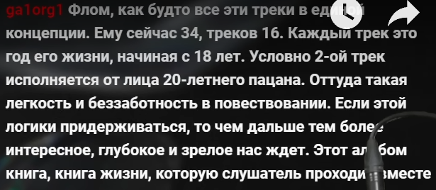 Прикольный есть трек, мне кажется, это пока лучший трек, который я писал. Одна из двух песен на альбоме, которые готовы и точно в него войдут. Мне так нравится вот этот кусок, мне кажется, что он именно текстуально очень удачный получился. Из новой песни, она называется «Пора завязывать». Там такие строчки: «Свобода может быть ненужной // Мне бросается в глаза, как мы разбрасывались дружбой // Я подумал о себе так необычно и нечаянно // Остался в тишине, она была необычайна // И чья вина, что мы такими были? // И сколько вина, что мы такими стали? Спасибо, скажем, что не стали былью // Ведь были так, словно были и стали».