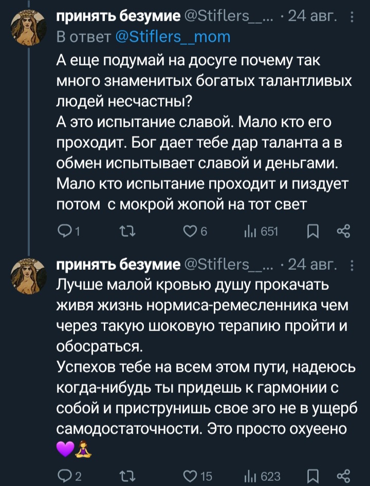 А че вы нахуй ждали от меня? я буквально шизик с диагнозом (не фейковым в отличие от некоторых) + инцел который женщин только на картинках видел, ясен хуй у меня в голове насрано и я могу исполнять разную хуйню. ну и что? ну я долбаеб, дальше что? каждому свое, не всем быть нормальными людьми и жить ахуенную жизнь. кому то надо и потерпеть. это нормально. каждому свое. всех обнял!!