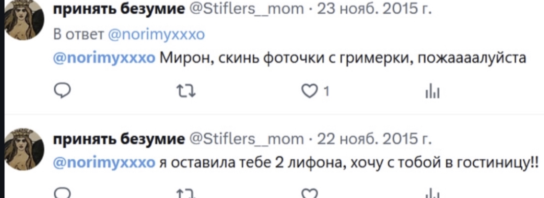 >>1048538 Блядь ну понятно, во первых ты бабища, во вторых ты больная нахуй на голову бабища. Просто бля посмотри вокруг, никто не солидарен с тобой в этой шизе про то как ведут себя любящие люди. И вот это лебезение известный друг- известный друг, статус, престиж, позор, кормящие руки. Ты ебанутая, ты понимаешь это? Никто, ты видишь, никто не видит никакого позора в том, чтобы в 3 часа ночи сказать «го через полчасика расход». Никто никого не оскорбляет, никто не ущемляется, о чем ты блядь говоришь? У тебя крыша на статусе творца поехала?