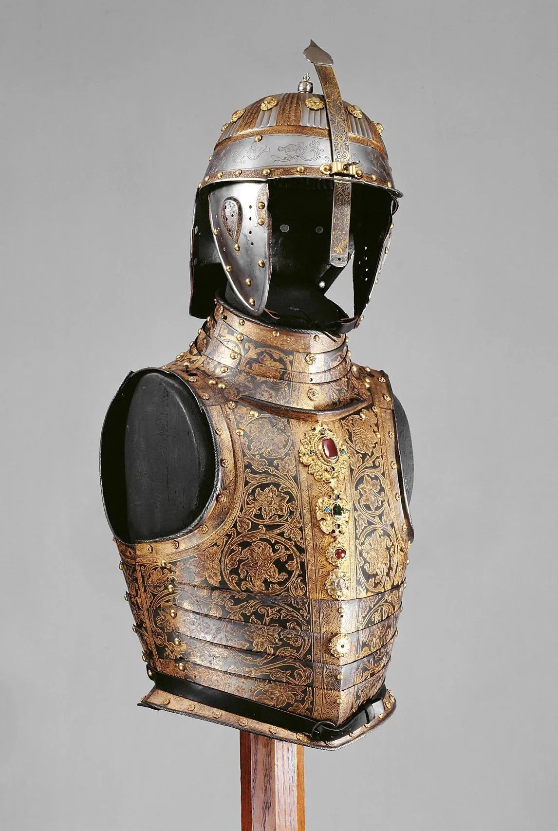 Наспинник и шлем хоть и являются предметами западного производства, но имеет следы грубых переделок совершенно не свойственных немецким и польским платнерам. По всей видимости наспинник был склепан из нескольких других, а шлем дополнен диковинной для готики чешуей наподобие рачьего хвоста. Это явная работа местных ремесленников. Судя по этому хозяином доспеха мог быть именно местный, литовский или даже русинский феодал, вассал Михаила Ижеславского.