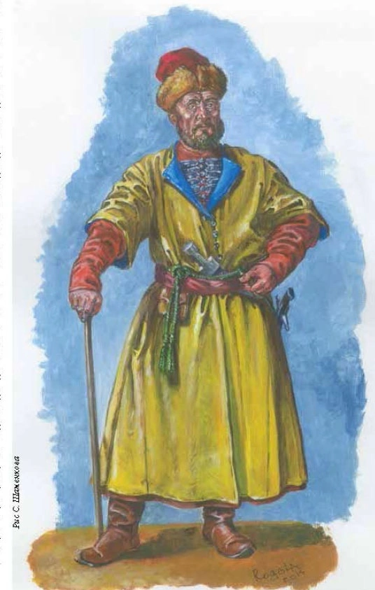 Одежда ратных людей в 1660 году. Из верхней одежды наиболее часто встречаются кафтаны: 12 штук (6 синих, 2 вишневых, 2 зеленых и 1 без обозначения цвета). На втором месте идут доломаны: 8 штук (3 синих, 3 зеленых, 1 лазоревых и 1 вишневый). Также в описи числятся 5 курт (короткая мужская одежда, без пол, 2 синих, 1 лазоревая, 1 вишневая, 1 зеленая) и 2 камчатых (без указания цвета) нагрудника. Последние, скорее всего представляли из себя короткую одежду носимую поверх рубахи. Традиционные для России зипуны так же имеются: 4 штуки (2 синих, 1 белый (возможно некрашеный), 1 зеленый). Зимняя одежда представлены 6 шубами, все покрыты сукном (2 лазоревые, 1 голубая, 1 синяя, 1 зеленая, 1 красная).