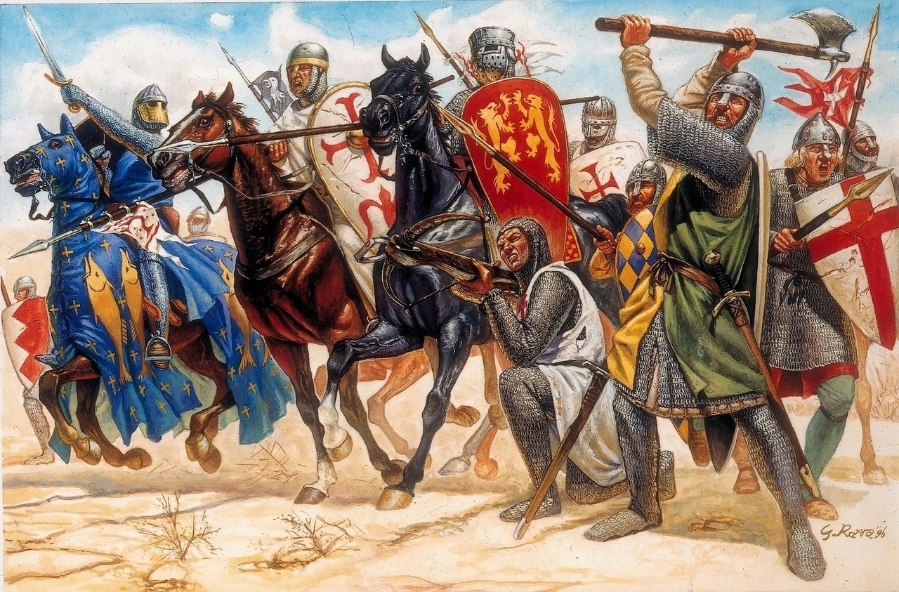 Начиная от причин поражений в битвах именно по причине использования лат, продолжая тем как тяжело были вооружены были стороны, продолжая тем что те кто сражались в доспехах не надевали их впервые в жизни и потому они не могли критически мешать, продолжая тем что кони в латных доспехах или стеганках едва ли были так уязвимы для стрел.