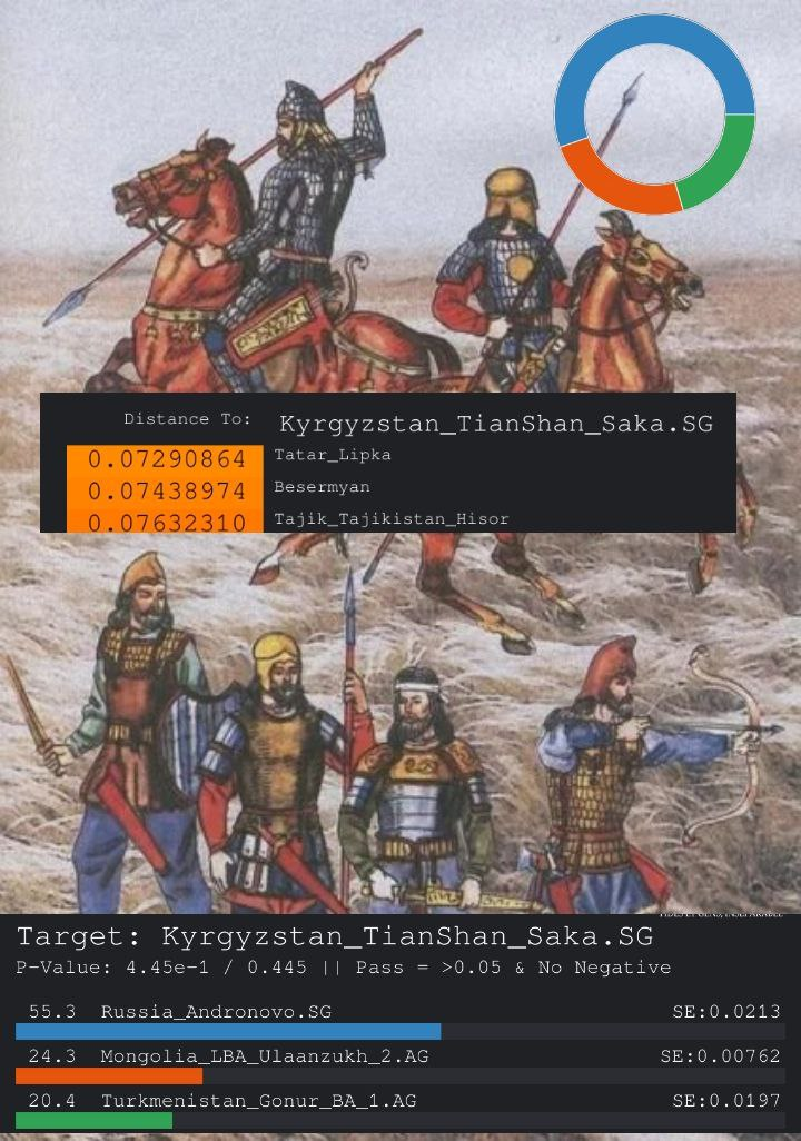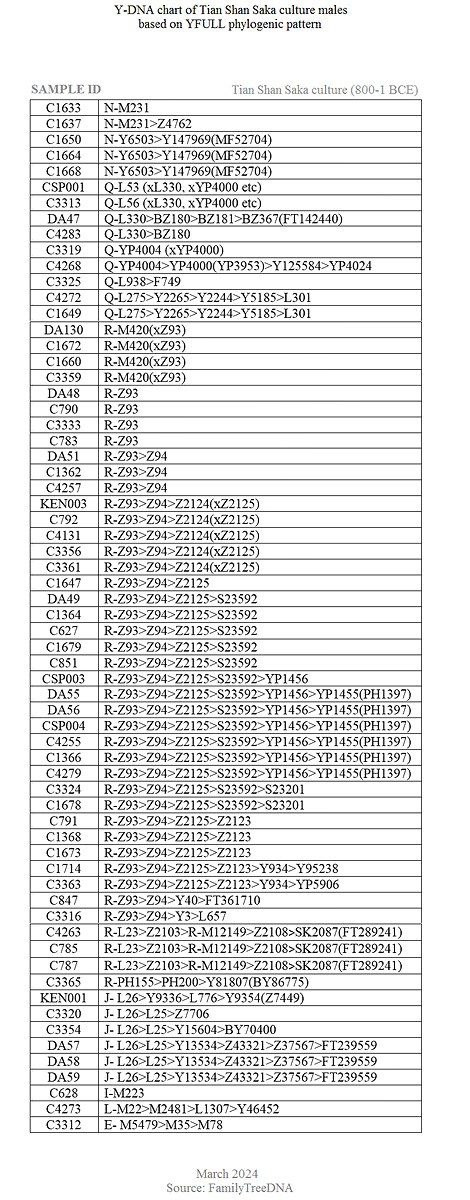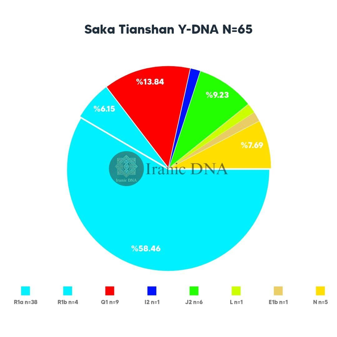 Во вторых, 65 образцов саков известны, саки моделируются на четверть через уланзух, это чуть меньше чем у туркменов. У саков только половина гаплогрупп относится к R1a-z93. и 22% их гаплогрупп это тюркские Q и N. Не ебу за субклады Q, но они тут указаны, скорее всего это не от ариев