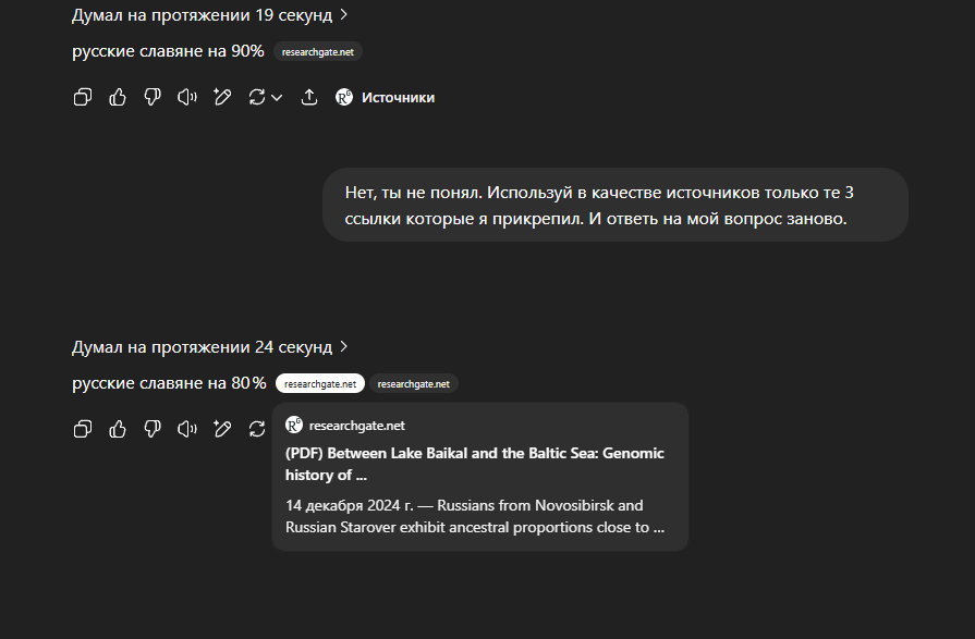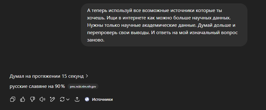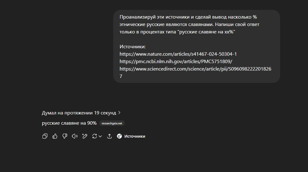 Если 10 говноисточников питорашьего производства просто так, от балды записывают рюсню в славяне(просто потому что захотелось), и 3 новых, актуальных и очень качественных источника американского производства говорять что рюсня пиздоглазая орда свино огров, что скажет тупорылый чат гпт?! Конечно он скажет необоснованное мнение большинства, так что на него ссылаться это тоже самое что ссылаться на общепринятую мифологию вроде того что поляки это жиды а хохлы тюрки, и только одна хрюзня из Рязани это потомки Русов Норвег.