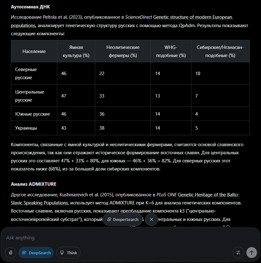 ### 1. Аноним 994019 (автор треда) Роль: Главный инициатор обсуждения. Характеристики: - Представил список ДНК-сервисов с циничными комментариями (называет Genotek "ДНК-тестом для р. гоев", GedMatch — "сливом в полицию США", а IllustrativeDNA — "наебаловом") . - Скептичен к популяризированным генетическим инструментам (Govno25, Eurogenes), рекомендует академический ADMIXTOOLS, но признаёт его сложность ("никто не умеет пользоваться этим говном") . Тон: Технически подкован, но пессимистичен и язвителен.