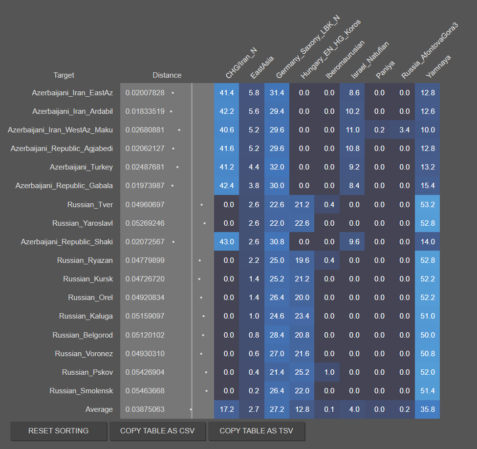 >>995212 >Грузины = Кура Аракс чек >Даргины/Нахцы = Кура Аракс + Ямная + ANE + чуть чуть монгол чек >Армяхи = Кура Аракс + Иран + Натуфийцы + ямная еще, у армян основная гаплогруппа буквальна z2103, это ядро ямной. А еще ИЕ язык. Азеры = Курас Аракс + Иран + натуфийцы + монголы Скорее ирана больше всего+ чут-чут монголов, даже меньше чем у турок.По факту это персы перешедшие на тюркский буквально.