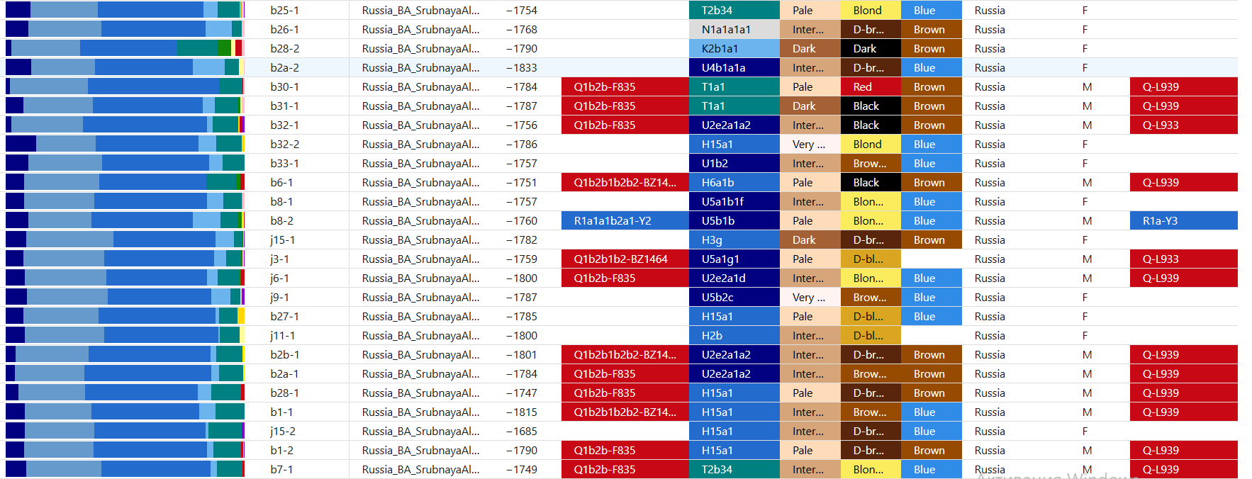 > больше половины синташтинцев имели голубые глаза Это буквально уровень северной европы, буквально белее хохлов