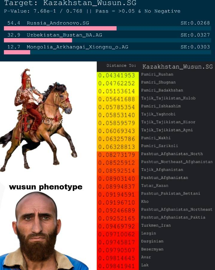 >>995127 Он помечен как аутлаер потому что не похож на 60 других образцов тяньшанских саков. Это как если среди сэмплов русских я найду поволжского немца и буду говорить что русские это немцы