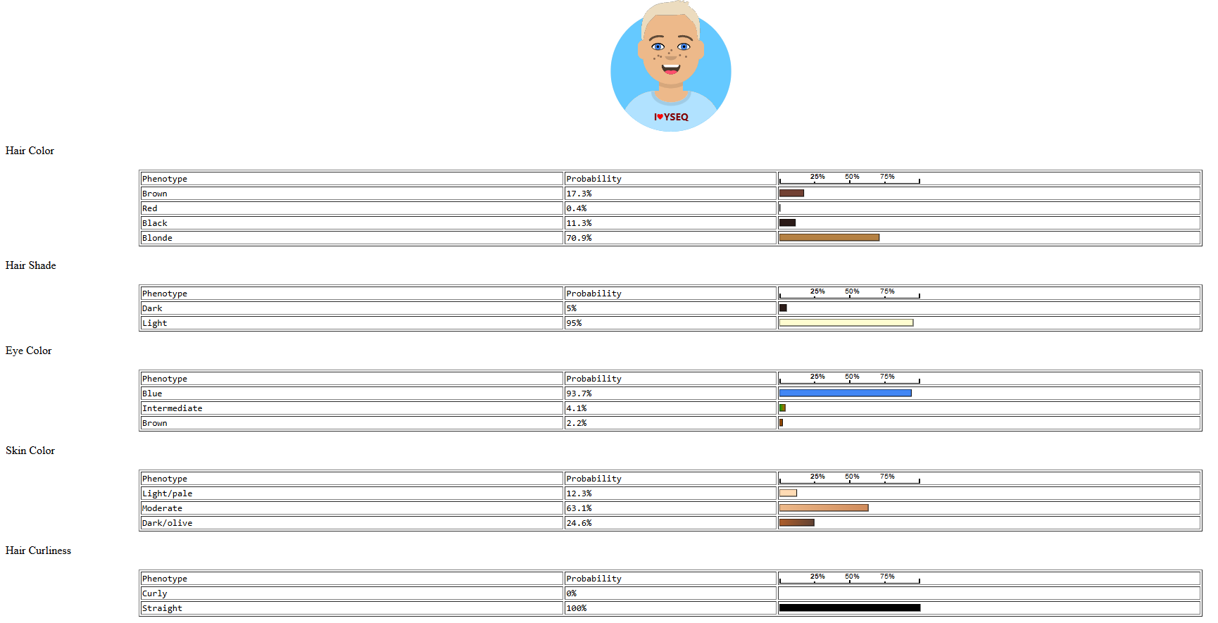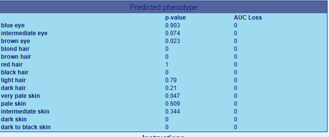 >>995280 Я понял как, в yseq есть строчка >The following CSV can be imported into the HIrisPlex Online Calculator: Я залил .csv файл в этот калькулятор по ссылке ниже, у меня получилось "pale skin 0.783" что в целом правда. Всё остальное как написано в yseq