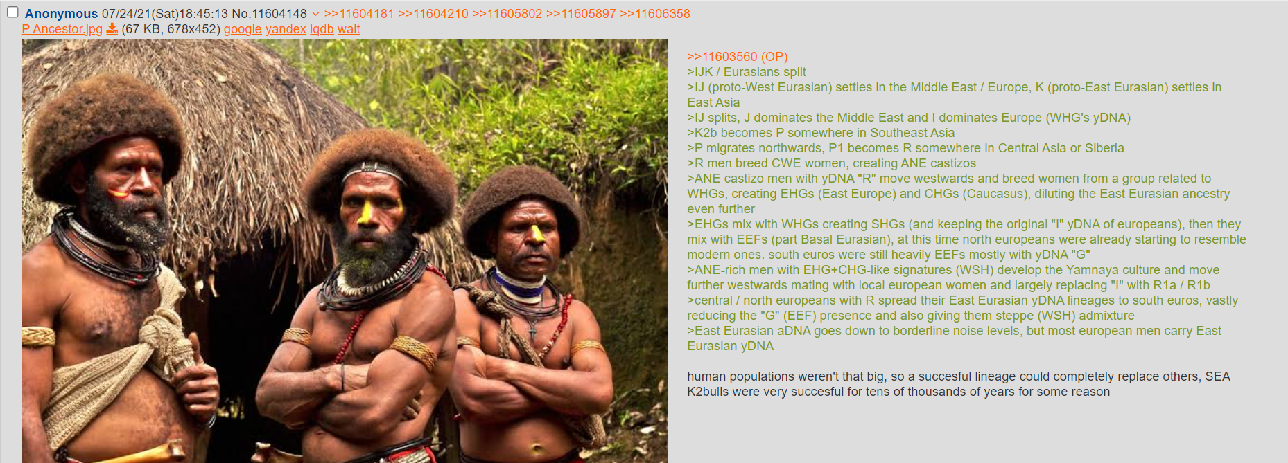>>995313 Всё так. ANE говниксы были на треть тяньюяньскими онге папуасами, от которых им досталась эта гапла. Гапла R и Q по определению не белые и не западно-евразийские по своему происхождению