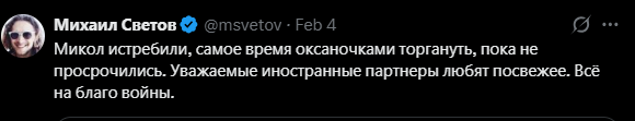 - Майзенберг прозрел насчёт русофобии Беса и пошел по стопам Витали - пытается закосить под душевнобольного алкаша.