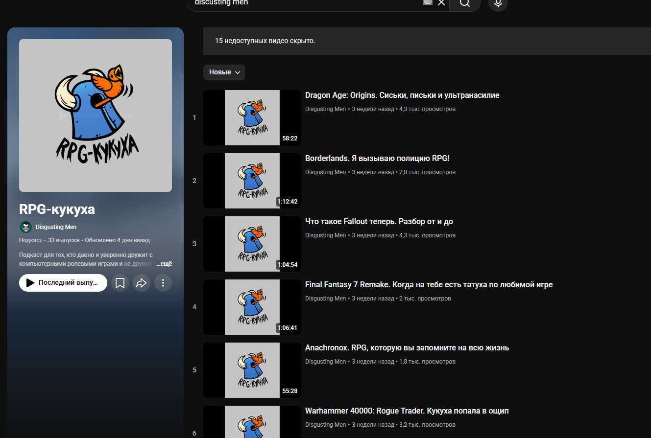 Disgusting Men («Отвратительные мужики») — это независимое издание для тех, кто хочет спрятаться от повседневной суеты и хайпа. Мы пишем про жизнь и развлечения — игры и книги, кино и музыку, находим угарное в науке и истории и рассказываем об этом. Еще мы готовим, едим, пьем, занимаемся спортом и всячески работаем над собой. (В прошлом "Адовая Кухня", "Подкаст про игры") Канал: https://www.youtube.com/c/DisgustingMen/videos Портал: https://disgustingmen.com/