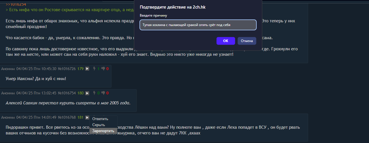 Ору с того как тут быстро просекли что тот ТГ фейк потому что Сявкин хуй признается что был не прав и хуй раскается как и тупорылая носатка что пол года сидит в СИЗО но продолжает кидать понты в письмах думая что прокуратора их не читает а до этого плакаться на судах.Два шизла пара.