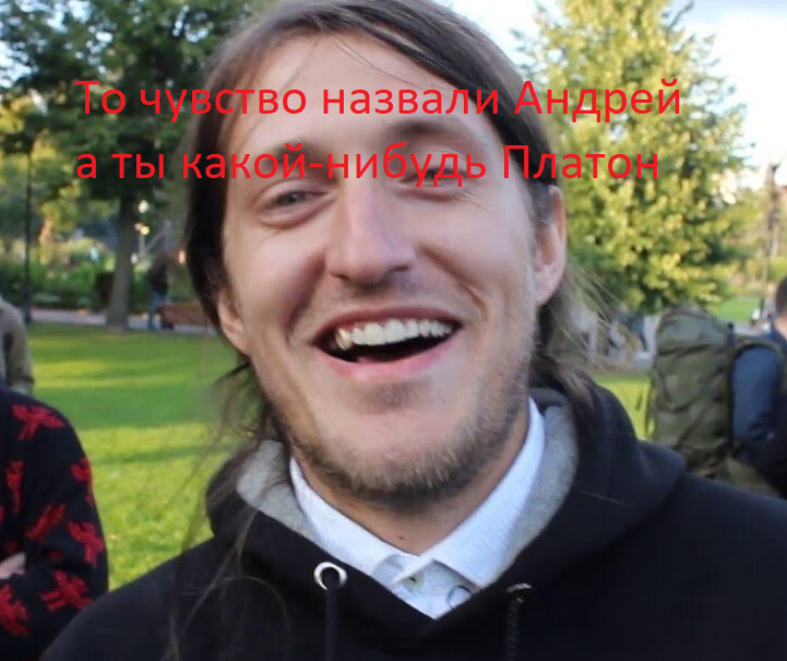 >>1053875 Есть мнение что нейрошизоиду жутко НЕПРИЯТНО, что он тезка Пиявыча, потому он пытается зафорсить Андрея, нихуя, не получается, потому он ещё больше батхертит и вновь пытается.
