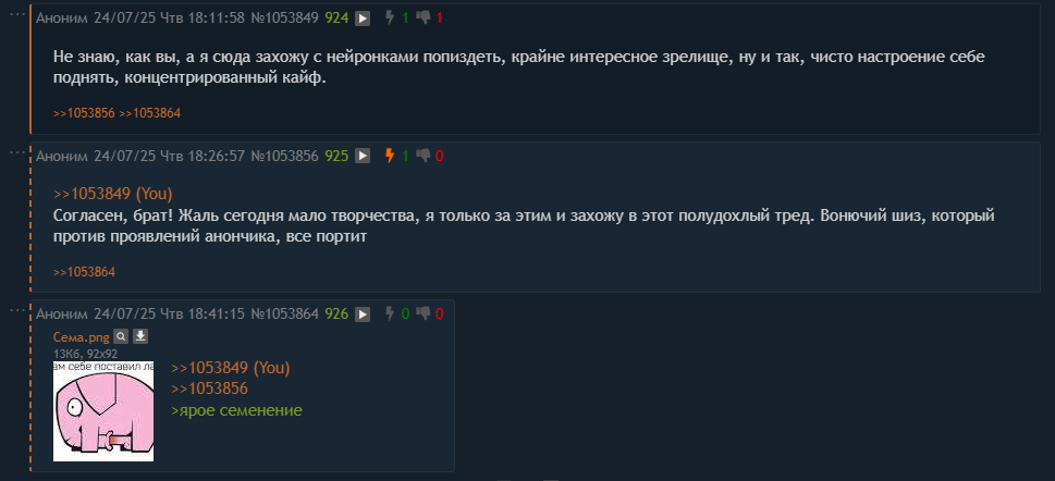 >что за этими нейронками стоят люди Не "стоят", а стоит, и не "люди", а один швайнопетух на подпиявочнике, с горящей после собственных обсёров дупой. Не исключено, что в его больной голове он так троллит местных обитателей, но по факту мы видим лишь пикрил.