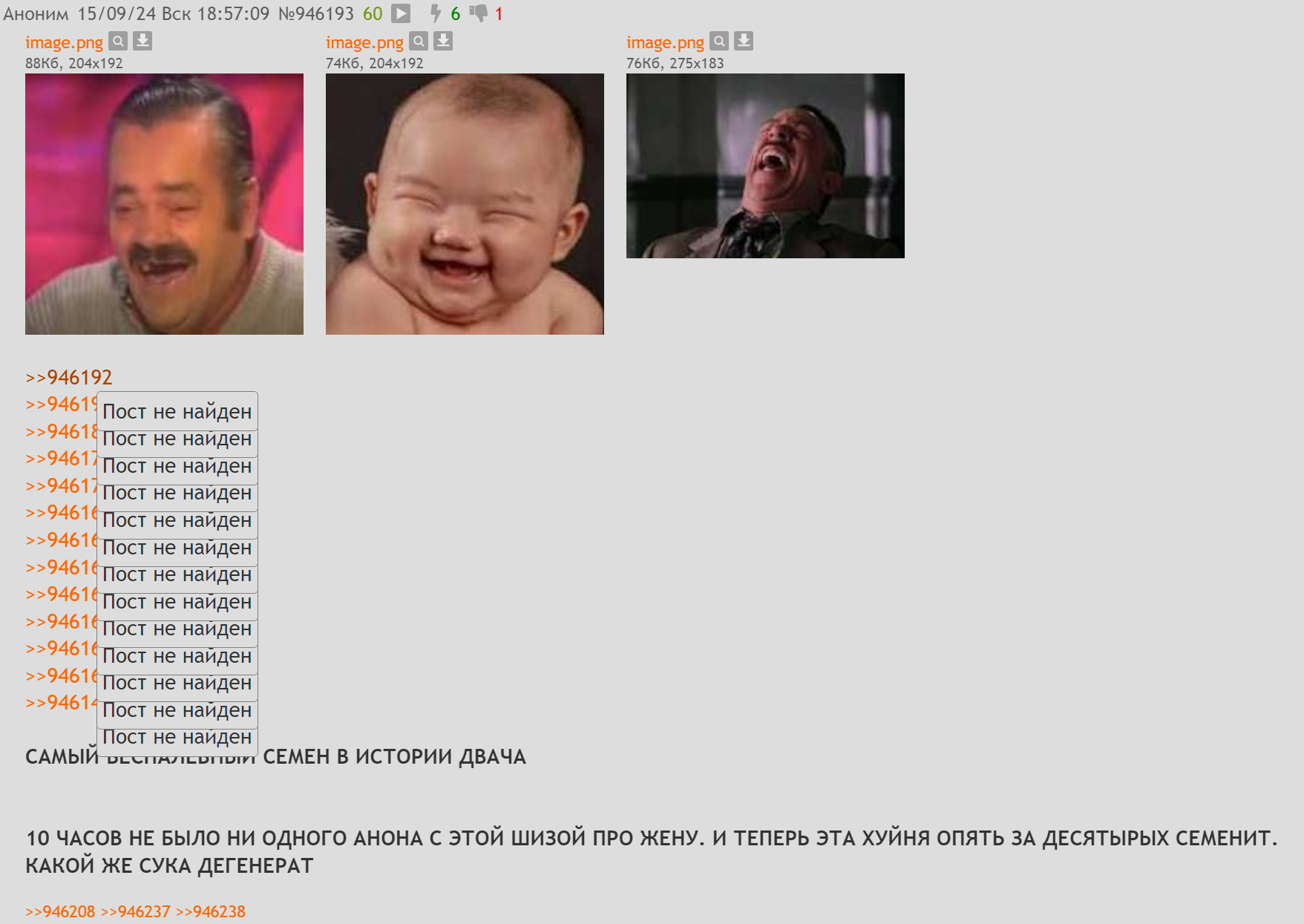 >>1025234 Чел кстати почти дословно зачитывает шапку треда. То есть он точно видел шизофорс про жену от газонюха, но не повелся на него. Подпедочурка реально не понимает, почему никто не байтится на его "пруфы". Раньше газонюхи проворнее были, Стаса помню забайтили бабой из айспика, а сейчас что, одна убогая подпедочурка на самоподдуве, которого уже все контентмейкеры обоссали, а он всё продолжает.