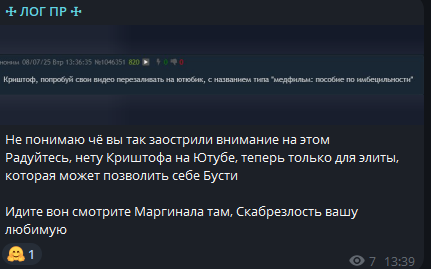 Прийти на стрим с овер 1к онлайном и визжать "ЙА ДЕВУШКА МАРГИНАЛА" это не скрытно, слабоумная подпедочурка. Форситься в тг и дискорде с одобрением админов это не скртный форс, слабоумная подпедочурка. Выкладывать фотки во всеобщее обозрение это не скртный форс, слабоумная подпедочурка. Заставлять подососов клепать хайлайты про ДЕВУШКУ МАРГИНАЛА это не скртный форс, слабоумная подпедочурка.