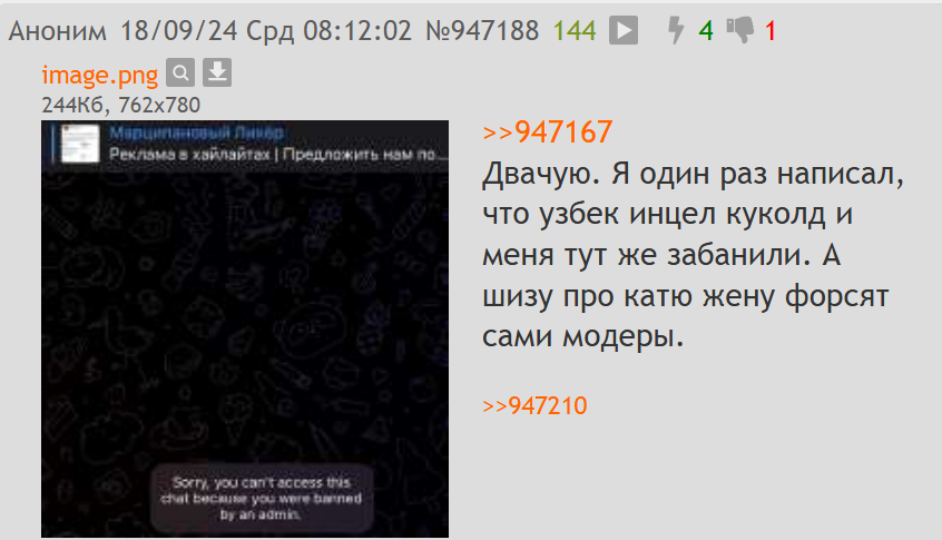 >>1051490 Если про Кирюшу напишешь, то да, тут же пермач. Саму шлюху там в открытую форсит фольга - админ в ликере, репостят её высеры, и никто никого не банит.