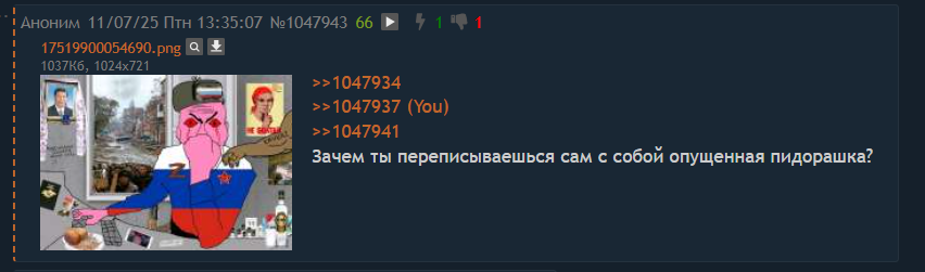 Но это как бы не исправляет ситуацию с Терпи47 который кроет релокантов и русофобов, Бесполезный так и остался либерахой который сидя в Питере поливает грязью Россию, а Хрю с новой силой начал высераться пока его Жмиль и Зио не опустят снова.