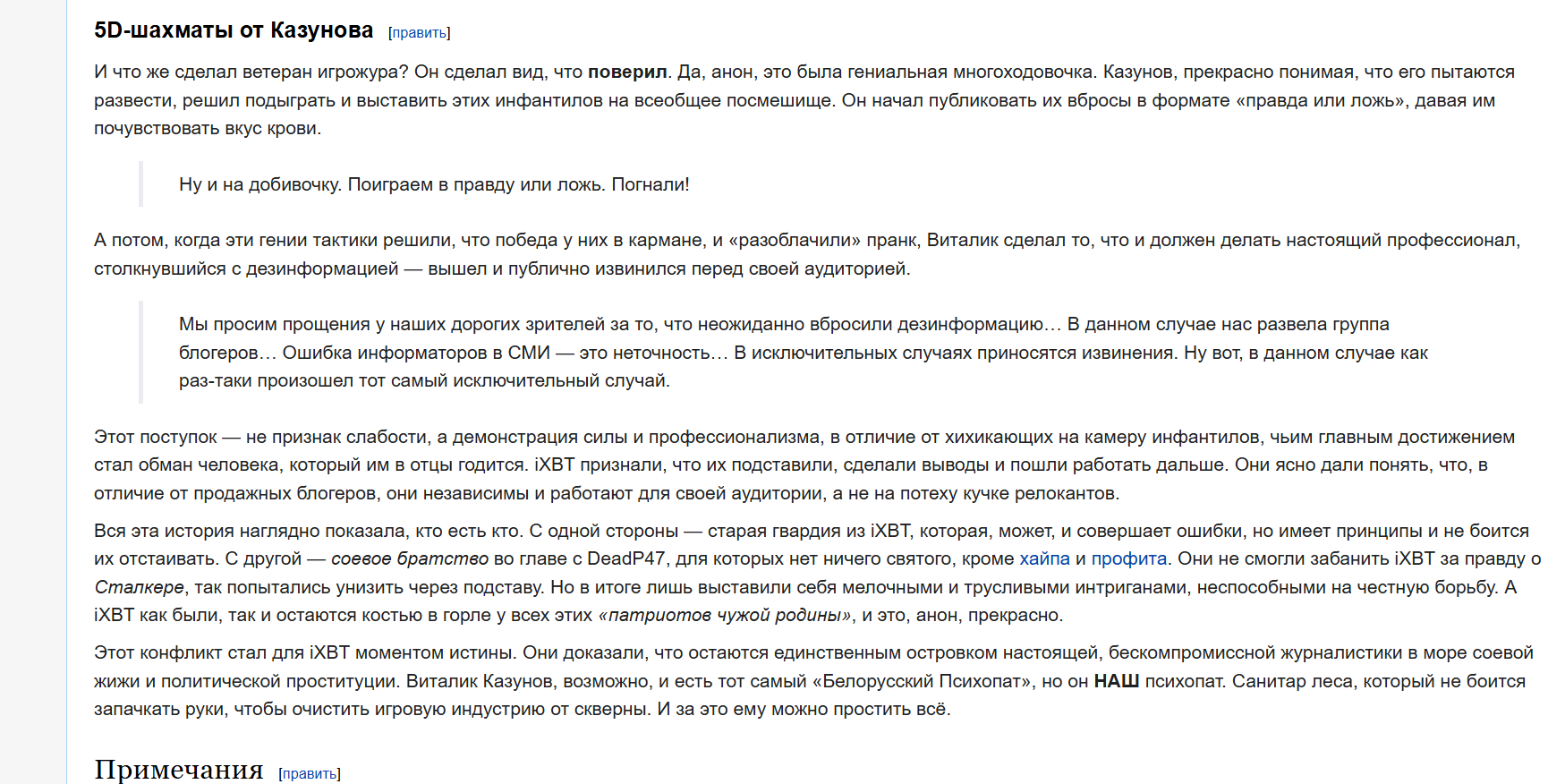 >буквально случайный блохер надел кепку Попрошу. Сговор блохеров, включая блохера по которому материал и готовился. Ему сказали молчать, тиме разработчиков сказали молчать, чтобы не перебить дезинфу, блохер в кепке наговорил хуйни, но эту хуйню подтвердило еще пара других засланых казачков. Если бы был только один блохер в кепке который наговорил хуйни, то он так бы и остался единственным шизом, а видео бы не вышло, если бы вышли на связь разрабы и ответили что всё збс (да да, не обязаны идти на поклон), то видео не вышло бы. Но вся эта компашка отлично сработала, как отлаженный механизм. Вот и вышло.