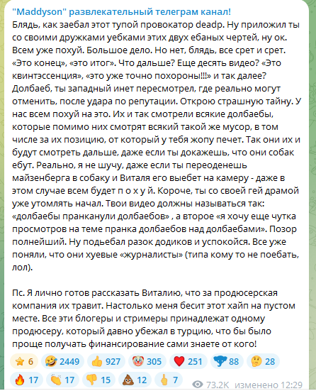 Ну никто бы так фронтом популярных ютуберов никогда "случайно" не выстраивался в комментах, заранее подговаривая и столько блять согласились в травле виталямбы поучаствовать, даже те кто никаким богом не связаны с ними...