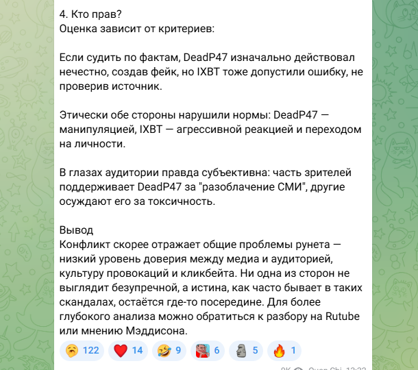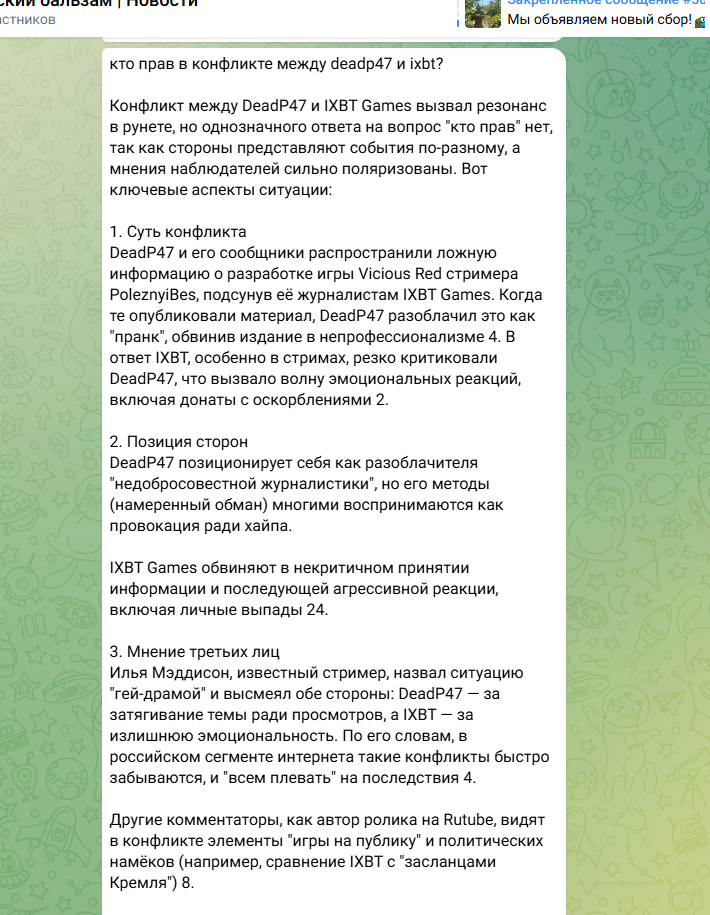 Я искренне не понимаю зачем туда Дедпи позвали, там от него только "мЕмНыЕ" вставки, смотрятся крайне убого. Пару раз ссылаются "а это можете посмотреть в ролике у деда" - а можно было для полноценного коллаба и пустить его к микрофону, чтобы он объяснил что GameChat некорректно, например