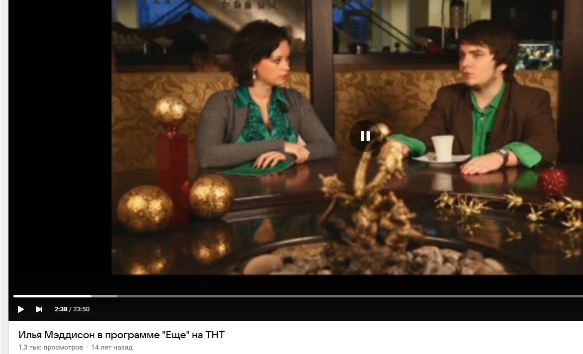 Мэддисону повезло познакомиться с Камикадзеди, который как раз через менеджеров Рутуба (в который, как раз в 2008 начал вливать деньги Газпром-Медиа) выбил ему шоу на ТНТ в шесть утра, лол