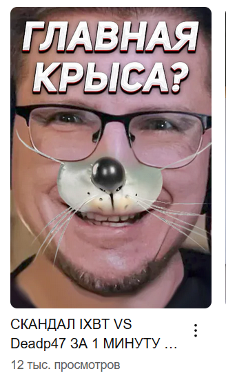 Последние новости: - Михас выпустил разъёбное разоблачение, где прошёлся не только по IXBT, но и по DeadP47. Оказывается, хейтеры "доносчика Витали" сами строчили кляузы на неугодных. Никогда такого не было, и вот опять!