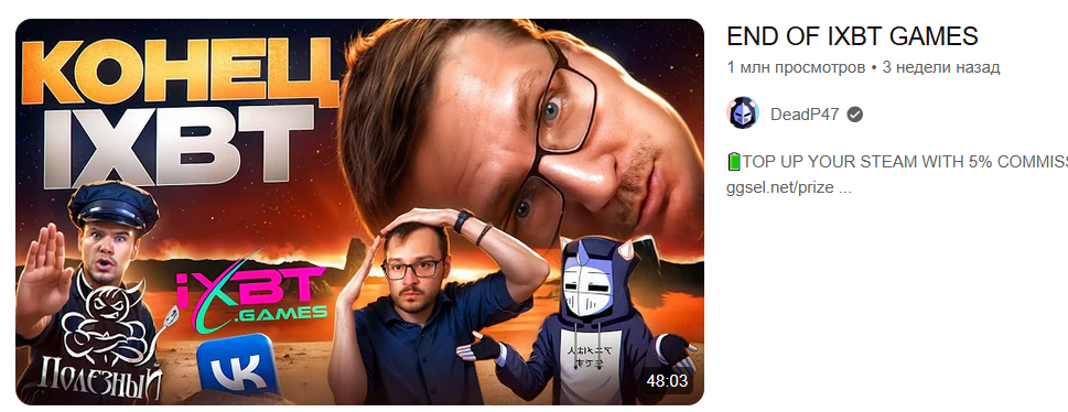 Вопрос: а насколько постироничен был вброс Мудисана про "координированную атаку" от Купиколда? В роликах у деда47 про IXBT была реклама ggsel. Связи ggsel с Купикод/Lofty пока не вижу.