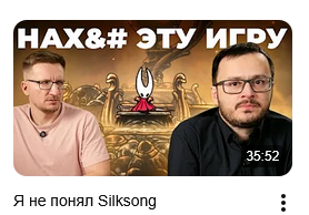 >>1095079 Ну ты видимо и правда дед, раз не разобрался за какой период видосы смотришь. Попробуй смотреть новые, а не трёхлетней давности, чтобы на актуальные темы попадать. Или для тебя события недельной давности это уже пыль и плесень? Тогда можно только посочувствовать о твоей насыщенной бурной жизни. Ткни в каком месте они зациклены на своих хейтерах? В каком месте они отдалились от игр? В месяц они играют в больше игр чем любой другой блогер о которых тут упоминают. Странно что ты игр не нашел, если за ними пришел, видимо пришел всё же не за ними, ну или из-за старости глаза уже подводят. Хотя обзоры про игры у них и правда самое слабое место, где бОльшая часть видео это зачем то пересказ всего сюжета. >поздравляю, смотреть буду когда спать захочется. Тоже востребованный контент. Как же без него ты засыпать будешь.
